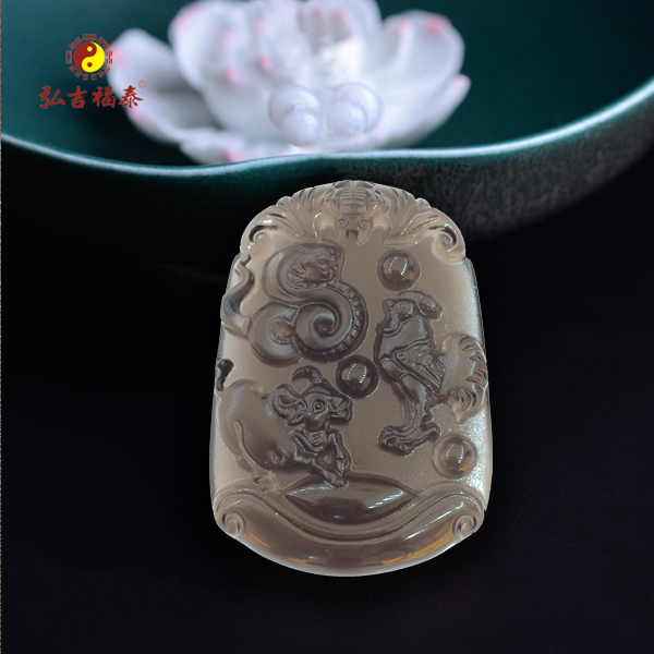 冰种黑曜石蛇鸡牛三合吊牌(大)