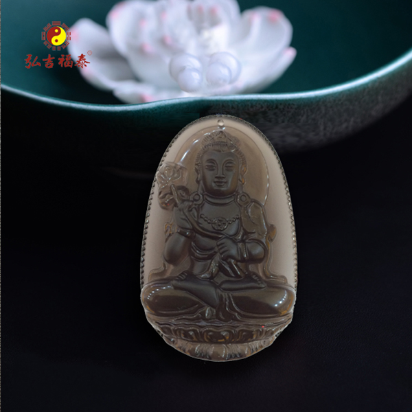 冰种黑曜大势至菩萨吊坠(大)